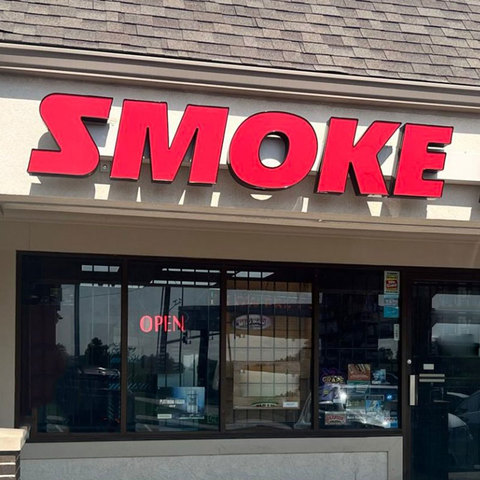 ป้าย3D กลางแจ้งป้ายไฟ LED ติดหน้าร้านทำควันป้ายอะคริลิคช่องโลหะป้ายโฆษณาสำหรับร้านค้าควัน